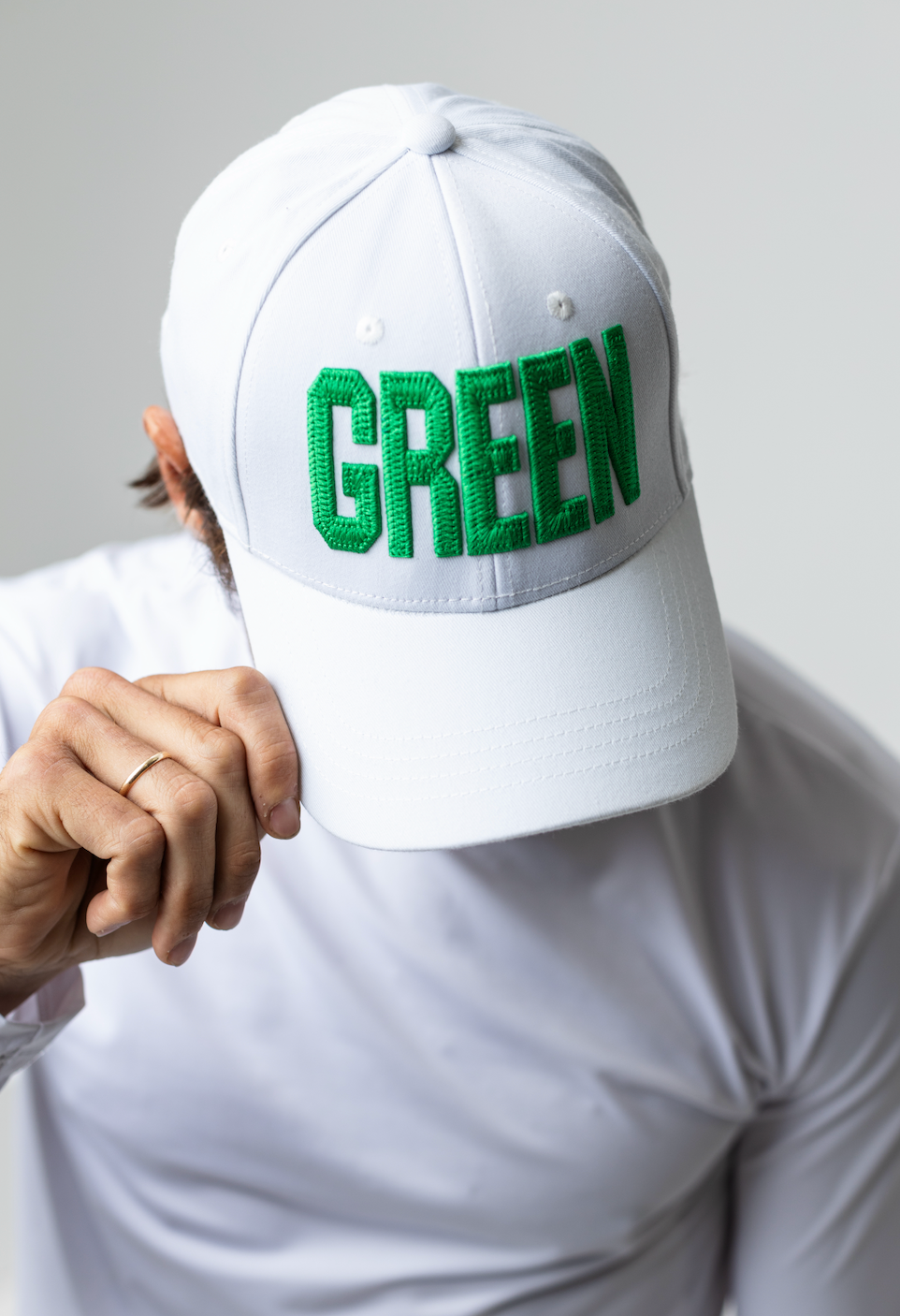 Champions for GREEN Sustainable Performance Hats are made from six 6 recycled plastic bottles. Our eco hats are built for advanced comfort and style. They come ready to inspire, equipped with our Champions for GREEN “WHATS YOUR #” side hem tag, and “ALWAYS FOR THE GREEN” back print. Our adjustable strap makes this hat the perfect fit for everybody.